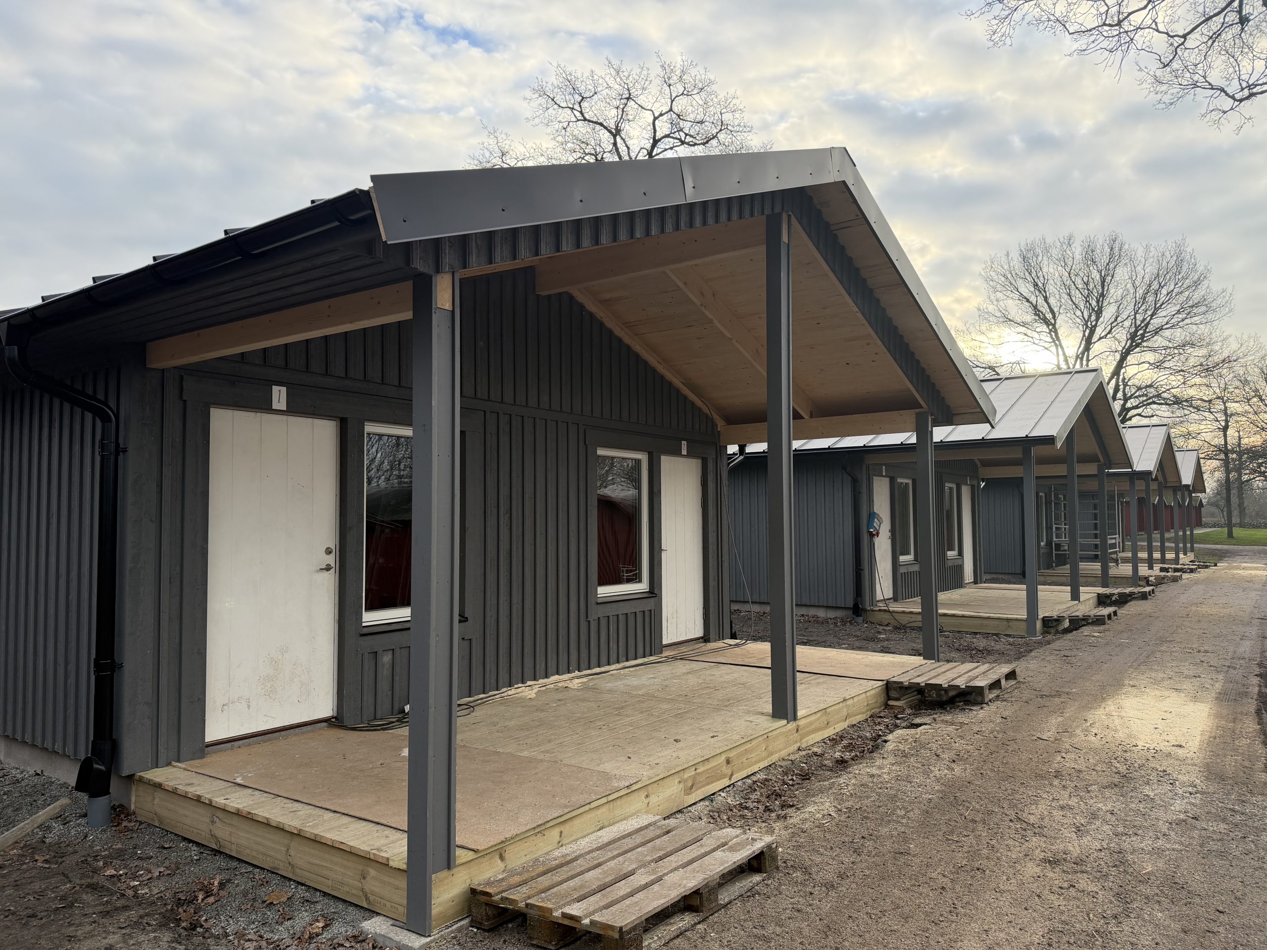 Avstånd mellan stugor och servicehus är ca 15-30m.